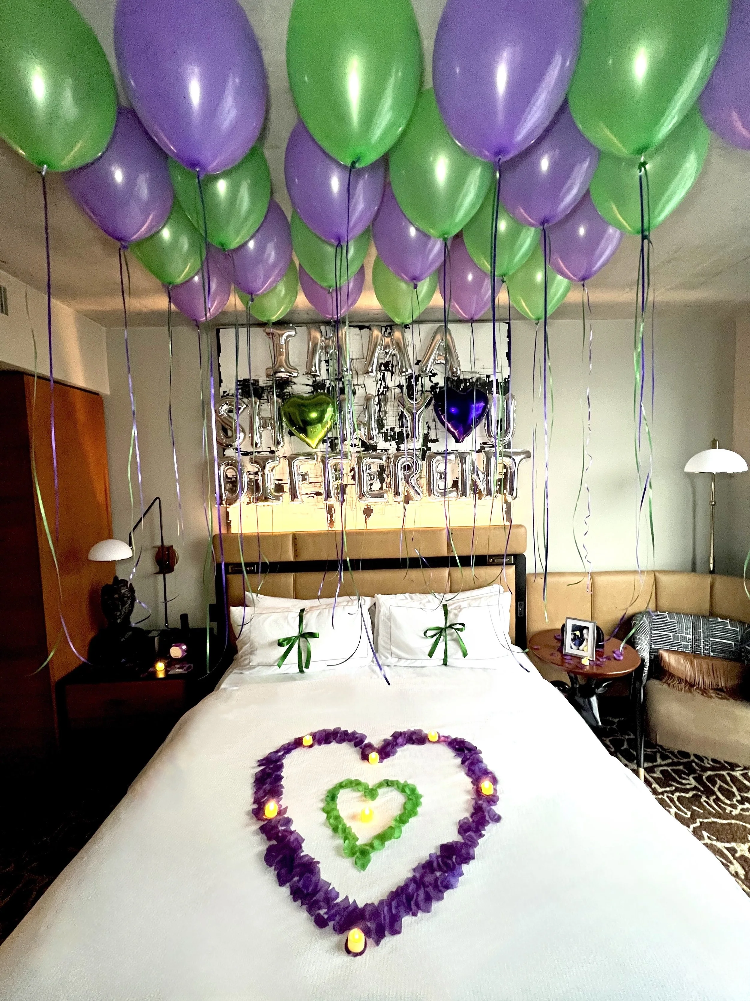 Turn your stay into a celebration to remember. Whether it’s a birthday, anniversary, or romantic surprise, we transform your hotel room or Airbnb into a beautiful, moment filled with balloons, petals, and sparkle. From intimate vibes to over-the-top glam. Every detail so all you have to do is walk-in "in awe."